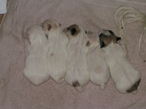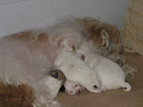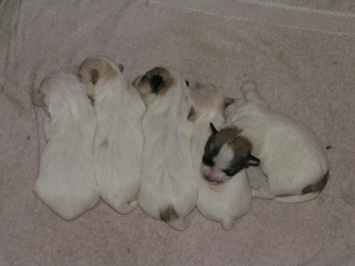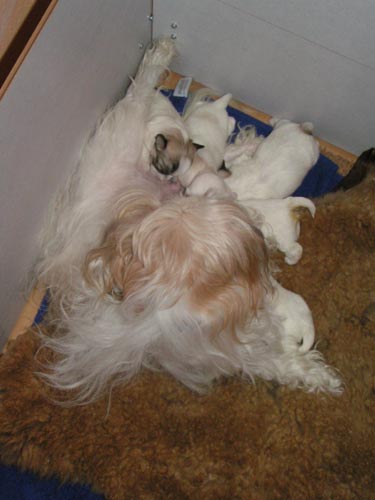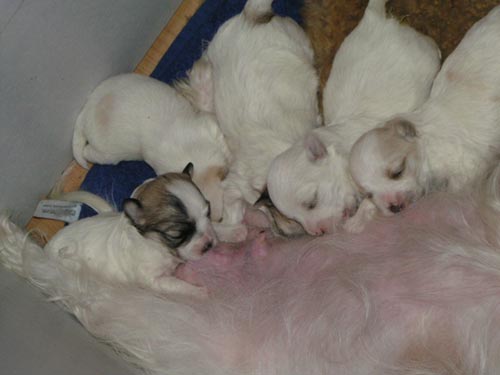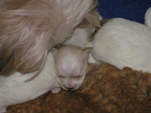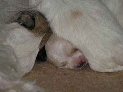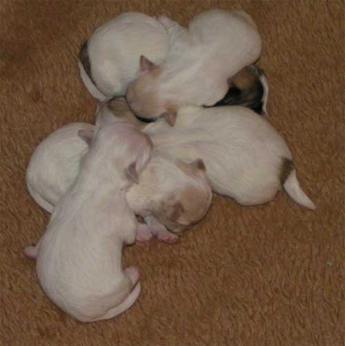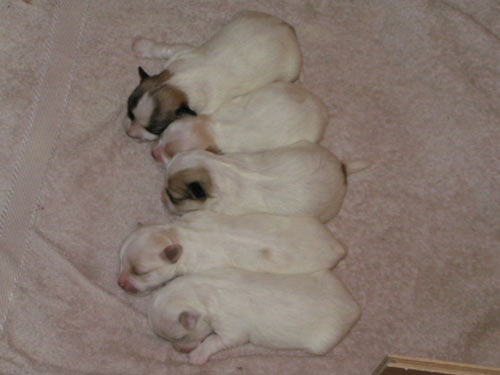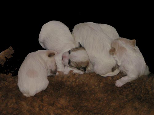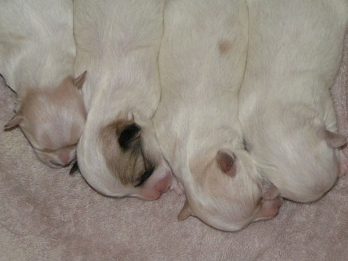 Am liebsten sind sie aber noch alle Zusammen. Den Versuch mit dem Zufüttern haben wir übrigens aufgegeben. Dafür bekommt die Lina jetzt Welpen-Milchbrei. So nimmt sie viele Kalorien zu sich und es schmeckt außerdem noch.