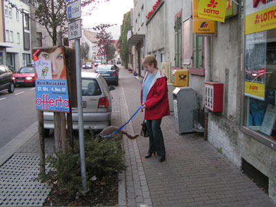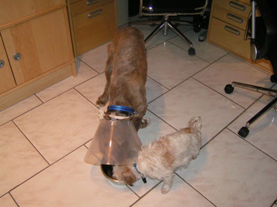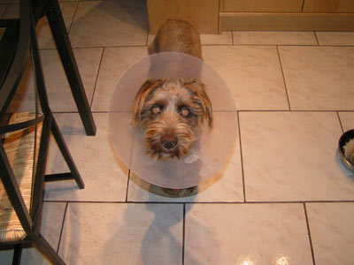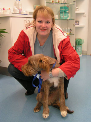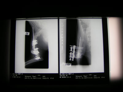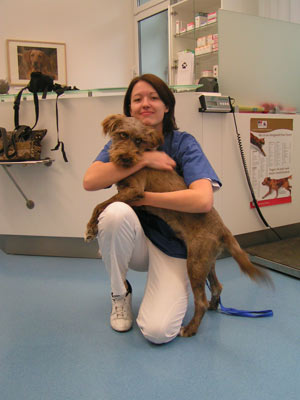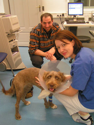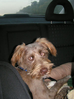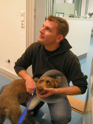 Sam auf dem Weg in die Klinik zur Operation.
